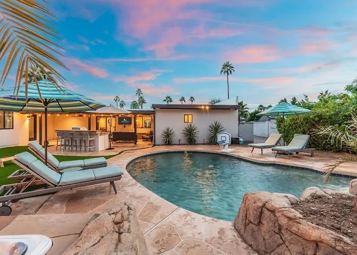 Située dans le quartier Paradise Valley, la villa New Grotto Falls Retreat With Pool & Waterslide Phoenix propose à ses clients de visiter un centre de spa pour se détendre. Offrant une vue sur la piscine privée, la villa vous invite à visiter le parc Cactus, situé à 4 km.